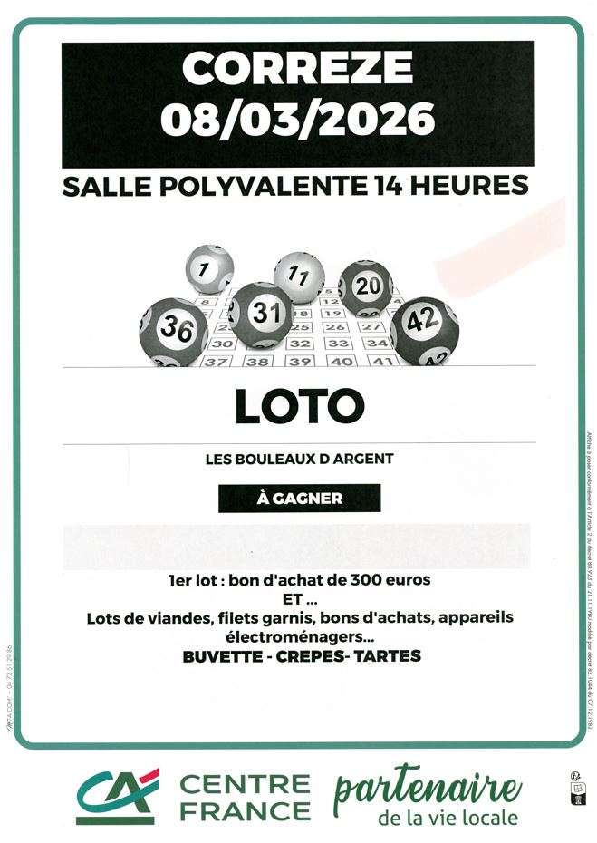 Rendez-vous au Super Loto des Bouleaux d’Argent ce dimanche 8 mars à partir de 14h dans la salle polyvalente (place de la Mairie).