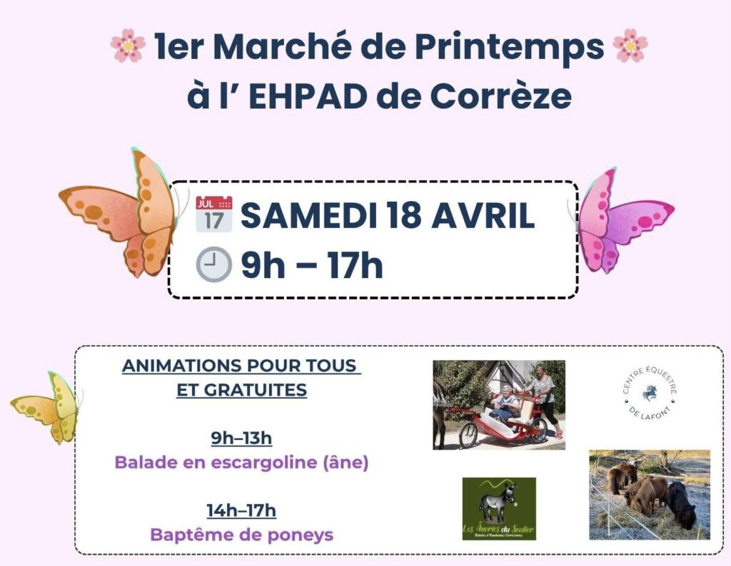 Rendez-vous au Marché de Printemps le 18 avril de 9h à 17h à l’EHPAD de Corrèze (1 rue de Goutteredon).