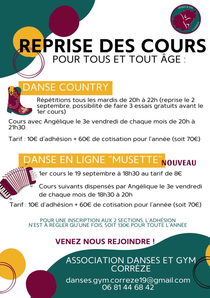 Danses et Gym est une association qui propose des cours de danse Country le 3e vendredi de chaque mois avec un professeur et la pratique de la danse Country en groupe tous les mardis soirs.