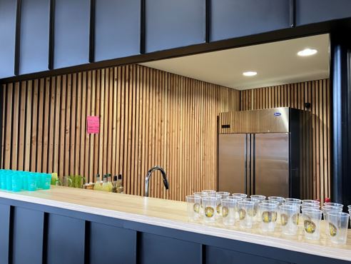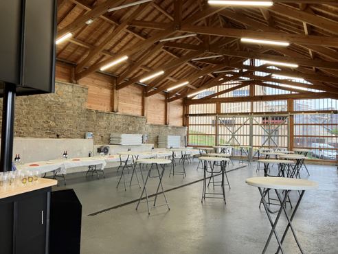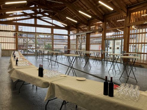 Pour les particuliers, les associations ou entreprises. La Halle offre un espace bar avec chambre froide, une grande surface et de larges ouvertures sur l’extérieur.
